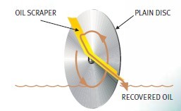 转盘盘片:盘边缘带挡边的T型盘,特别适合于回收较低粘度的溢油;亲油疏水的光滑圆边圆盘,适合回收中、低粘度的溢油。