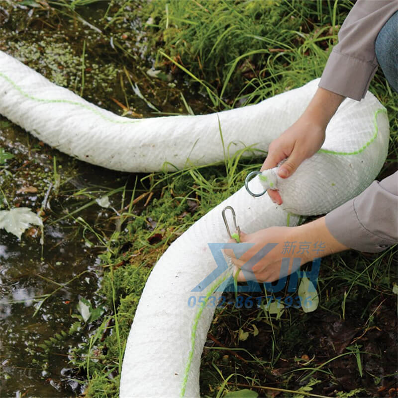 吸油索由具有亲斥水性的聚丙烯无纺布包裹吸附颗粒和专业制作的浮体加工而成,可以根据客户的要求生产不同的规格的产品。